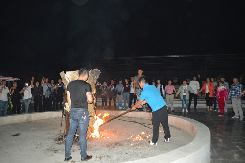 晚飯過(guò)后,大家集合到篝火臺(tái),我們總經(jīng)理“林新峰”先生,堅(jiān)定地點(diǎn)燃了柴堆,隨后一股明亮的火焰騰空而起,人群爆發(fā)出一陣歡呼聲?;鹧嬖饺荚酵?,像一匹奔馳的駿馬,又像迎風(fēng)飛舞的鳳凰。