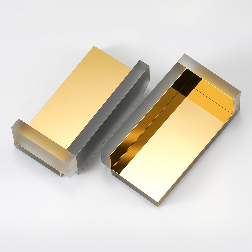 鍍金膜反射鏡在會(huì)現(xiàn)在清洗干凈的基片玻璃上先蒸鍍一層薄薄的鉻材質(zhì) 的底膜,然后再鍍制金材質(zhì)膜層。由于采用的是金屬膜所以本款光學(xué)反射鏡的反射率或反射率 波長(zhǎng)特性不會(huì)隨著入射角的角度變化而發(fā)生大的變化。同時(shí)鍍金膜反射鏡在紅外光譜區(qū)域有很 高的反射率,沒(méi)有被反射的光波會(huì)被金屬薄膜吸收,不過(guò)透過(guò)。